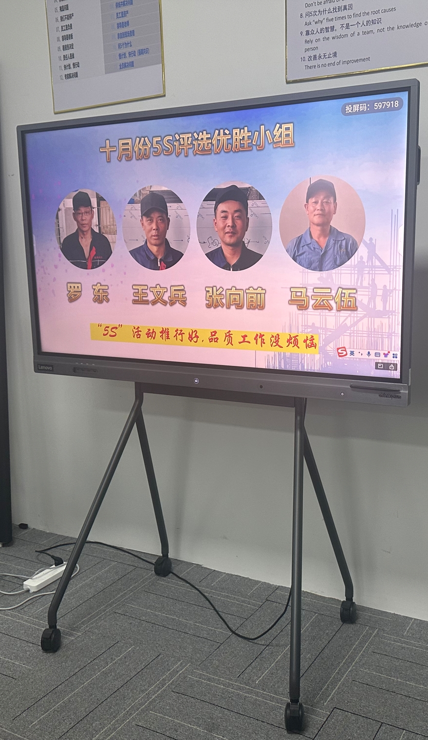 班组5S月度评比以现场5S分层审核、5S问题整改、重复问题发生率等相关数据进行评比并排名,确定5S优秀班组。10月份5S评比优胜小组是:王文兵、张向前、罗东、马云伍。